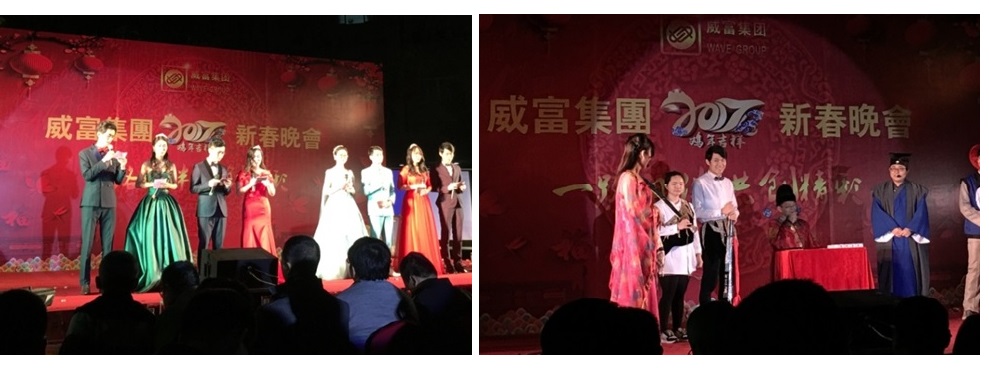 2017年1月15日,“2017年威富集团新春年会”在公司总部科谷科技园如期举行。集团总部和来自江门威富、华立兴、子波、顶一、多媒体等各子公司的员工代表们齐聚一堂。晚会在欢声笑语、载歌载舞中拉开帷幕。2016年,在董事长张少林先生的带领下,广大威富人踏着梦想而来,满载而归。在威富人十六载的团结与奋斗下,威富集团不断发展壮大,逐步形成自己独特的企业文化。