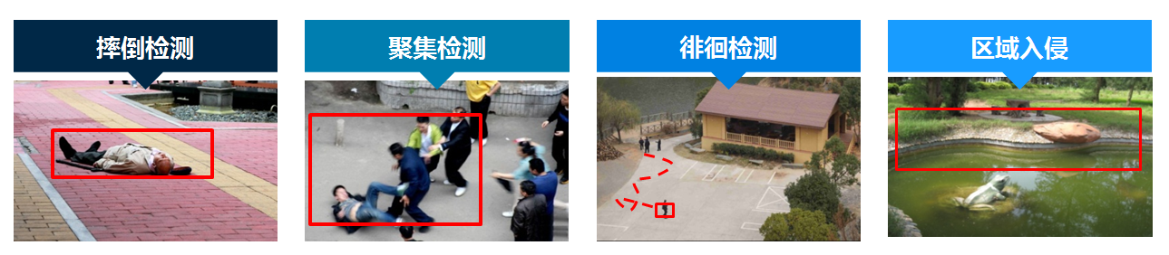 在社区的特定场所部署异常行为分析系统,基于威富人脸识别技术、移动侦测技术、行为检测等技术,既能为社区人员提供服务,同时还营造了安全的社区氛围。